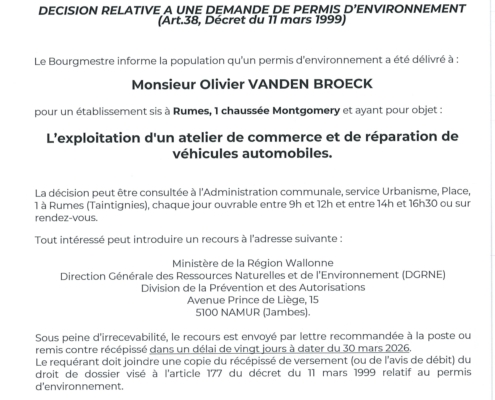 Permis d’environnement – Avis