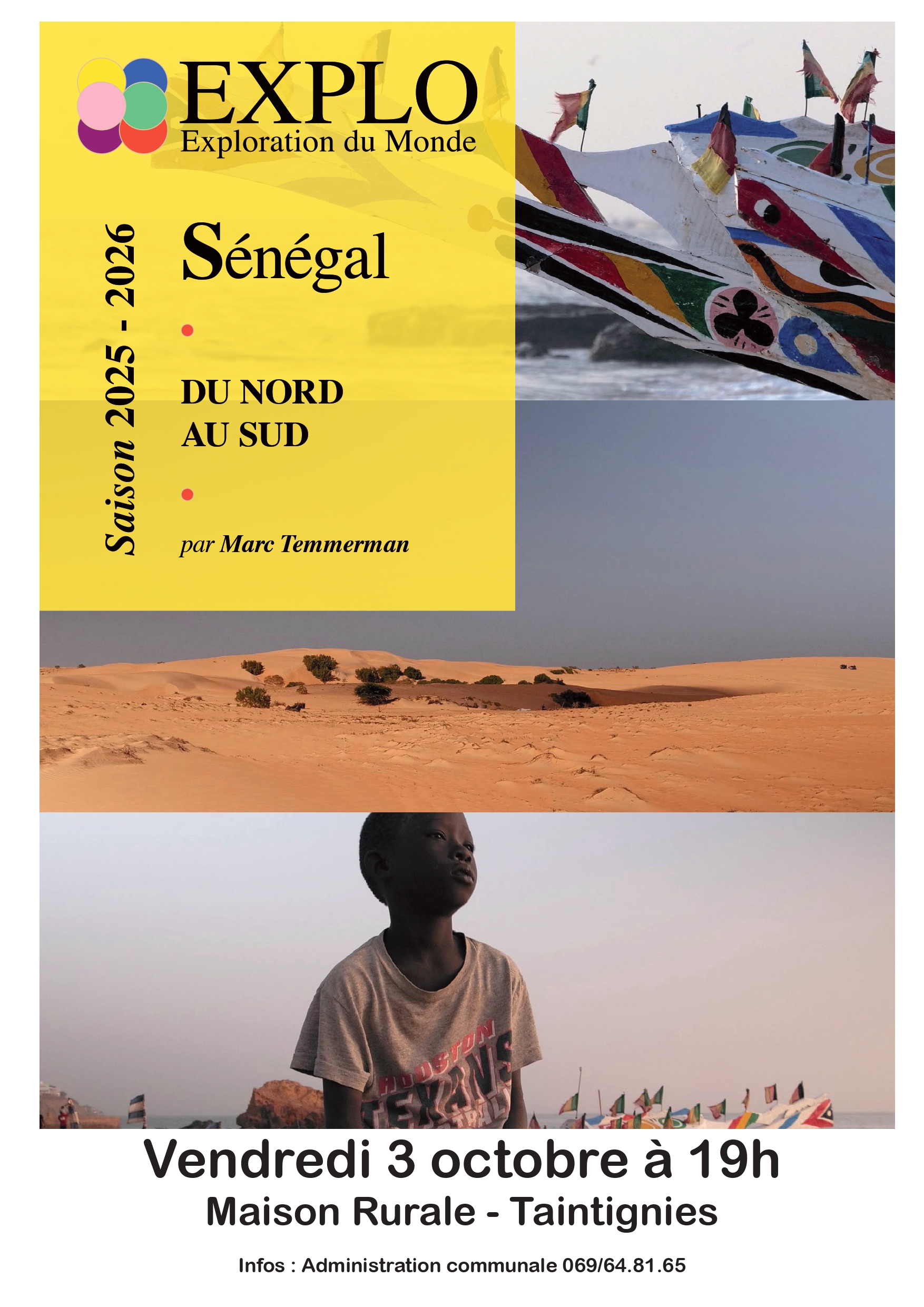 Exploration du monde Sénégal, du nord au sud + Ajouter à mon Agenda Google + iCal / Outlook export 00 jours 00 heures 00 minutes 00 secondes Date Oct 03 2025 Heure 19 h 00 min - 21 h 00 min Lieu Maison rurale Taintignies Catégorie Taintignies Organisateur Bibliothèque Téléphone 069/22.59.49 Email bibliotheque@communederumes.be Partagez cet événement
